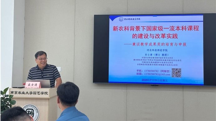 7月11日,公司宋士清教授应南京农业大学园艺公司的邀请,面向青年教师做了题为“新农科背景下国家级一流本科课程的建设与改革实践——兼谈教学成果奖的培育与申报”的学术报告。