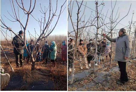 此次冬剪实习共分3组,每组由4名教师带队,涵盖了板栗、苹果、桃、梨、核桃等5个重要树种,冬剪果树种植面积达3000亩。实习中,教师们认真细致地讲解了果树管理理念、冬季修剪方法、果树修剪反应等专业知识,员工们全面系统地理解了北方主要果树冬季管护技术要领。通过冬剪实习巩固和加强了园艺专业员工们对果树专业知识和果园管理技术的理解和应用,员工们依靠学会的专业知识,切实服务了合作基地建设,从而促进了当地乡村发展。整个冬剪实习充分展现并传承着园艺人“立德笃行,知学善用,敬业创新,毓园弘艺”的院训精神!