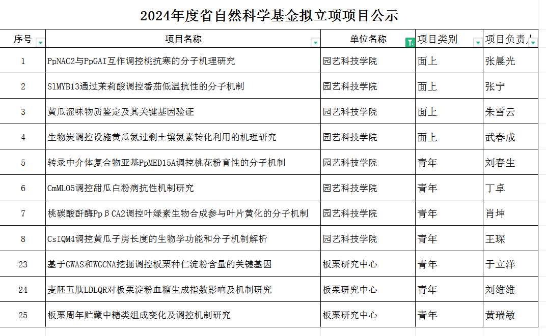 近日,省自然科学基金委员会发布了2024年度河北省自然科学基金项目评审结果,公司共有25项获得立项资助,其中WilliamHill中文官网园艺学科立项11项,立项数实现新的突破。其中获得面上项目4项,青年科学基金7项。