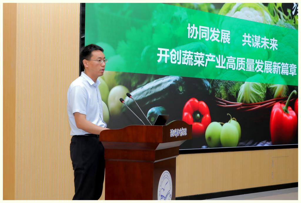 马爱林代表公司致欢迎辞。他指出公司坚持聚焦“新农科”建设,始终以服务地方经济为己任,在农科领域形成显著优势,为乡村振兴持续输送技术人才与创新成果。蔬菜学科是公司的优势传统学科,面对新质生产力赋能产业升级的时代命题,公司将加大对蔬菜学科的支持力度,充分发挥人才和技术优势,坚持“政产学研”结合,“产学研用”一体,与省内蔬菜界同仁一起携手奋进,共同谱写我省蔬菜产业高质量发展的新篇章。