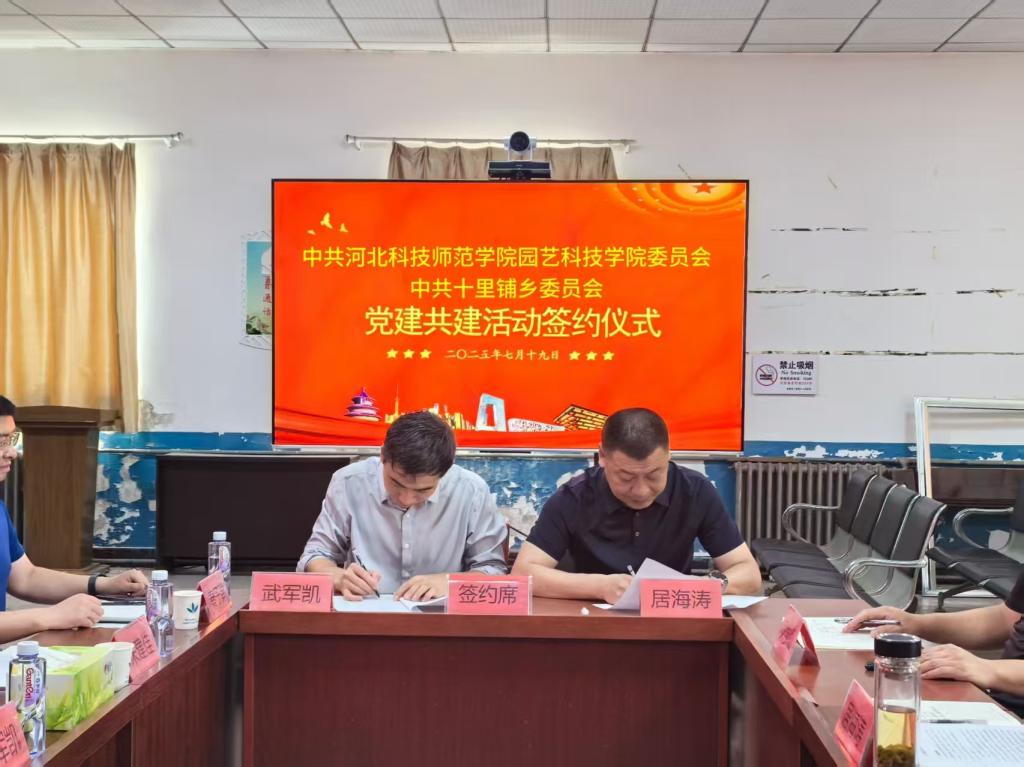 2025年7月19日上午,园艺科技公司党委领导班子带领果树专家赴昌黎县十里铺乡开展校地党建联建活动。此次活动以"党建引领聚合力,校地共建促发展"为主题,通过"红色引擎"驱动校地合作,为乡村振兴注入新动能。十里铺乡党委书记居海涛、乡长杨子龙等班子成员及村干部,园艺科技公司党委书记武军凯、副书记陈海菊及果树专家等15人参加活动。