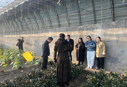 在蘑菇村基地,现场观摩了王帅博士负责的盆栽矮生番茄培育项目,详细了解其在品种推广与技术服务方面的实践内容。在忠伟蔬菜专业合作社,团队走进温室大棚,关注谢洋博士参与的特色蔬菜种植与现代化生产管理实践,并对两位教师扎根一线、发挥专业优势开展科技服务的表现给予肯定。